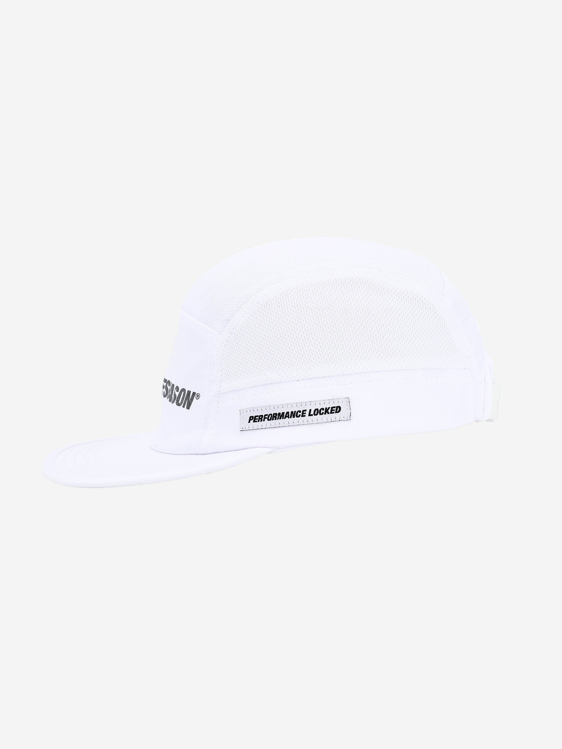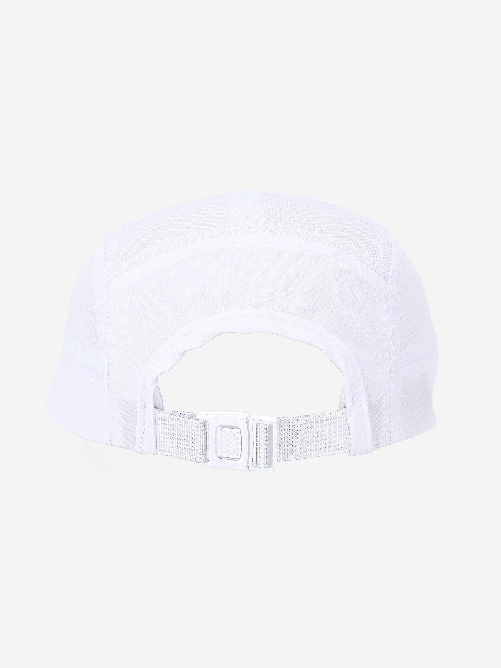 A cap that reflects your endurance mindset — minimalist, uncompromising, high-performance. This ultra-lightweight 5-panel design features strategic mesh zones for maximum ventilation. The front logo appears black during the day but becomes reflective at night, adding visibility and safety in low-light conditions. An adjustable back clip ensures a secure fit and can be opened — perfect for threading your hair through. From the very first kilometer: feel lighter, cooler, more focused.
